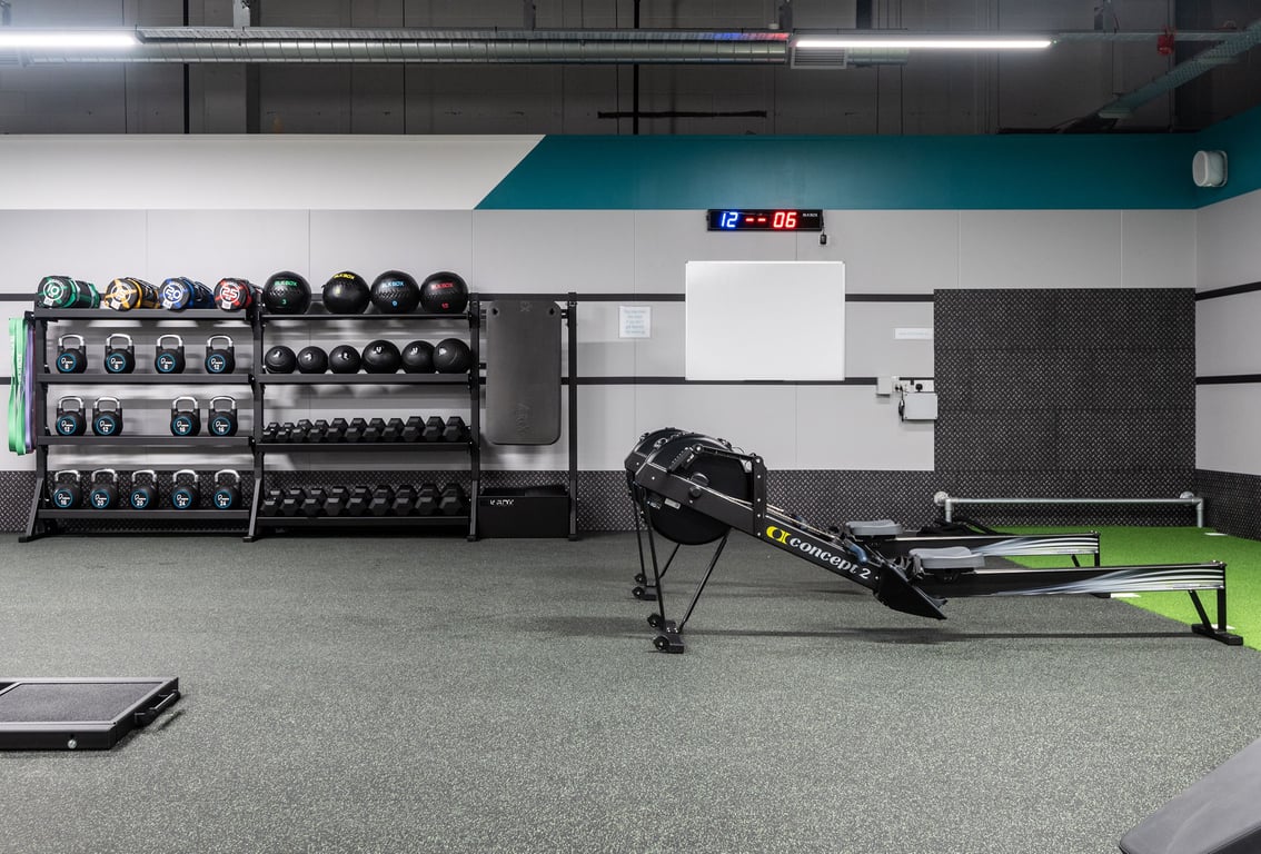 Cardio plus functional equipment and free and fixed resistance weights