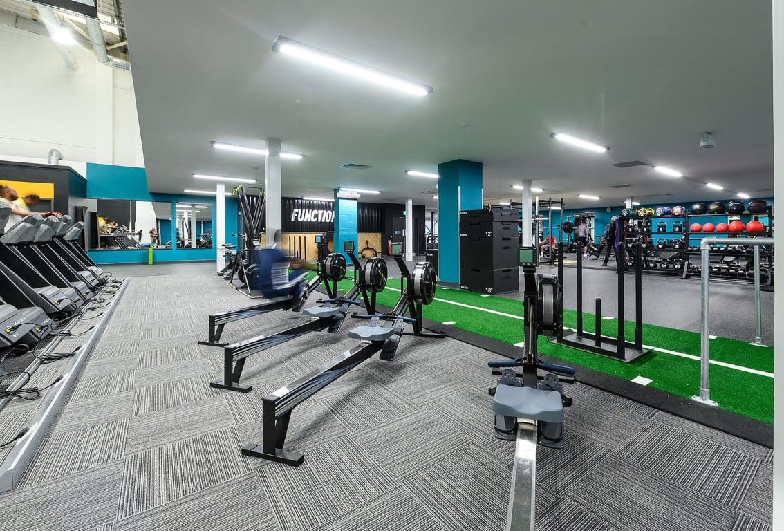 Cardio plus functional equipment and free and fixed resistance weights
